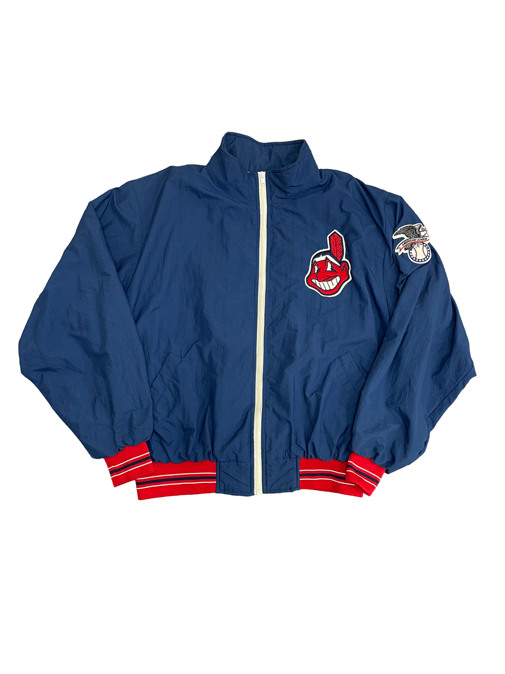 MLB関連のアイテムを製造していたSignatures BY EdsWestのクリーブランド・インディアンスのナイロンブルゾン。胸元にインディアンスの旧ロゴの刺繍あり。裏地有り。