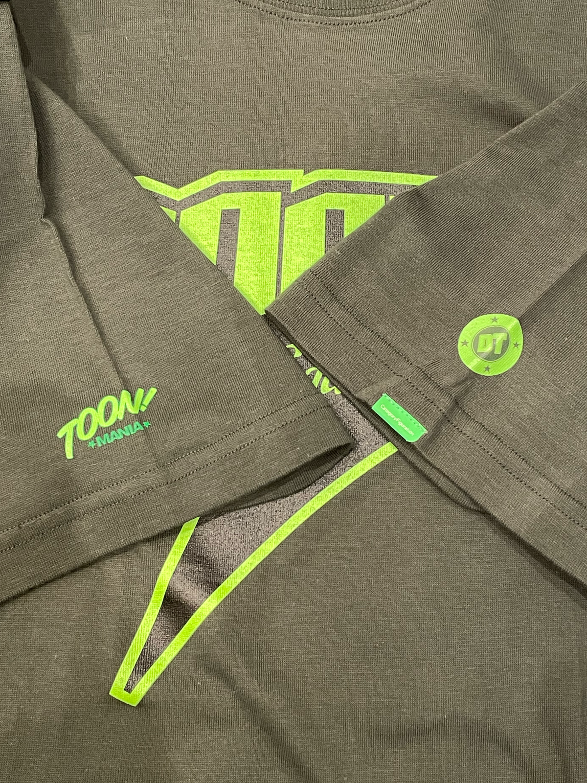 WTAPSのカートゥーン風なグラフィックを取り入れたアイテム群のTOON MANIAのTシャツ。2000年初期のオレンジタグ。ボディはカーキのデッドストック。